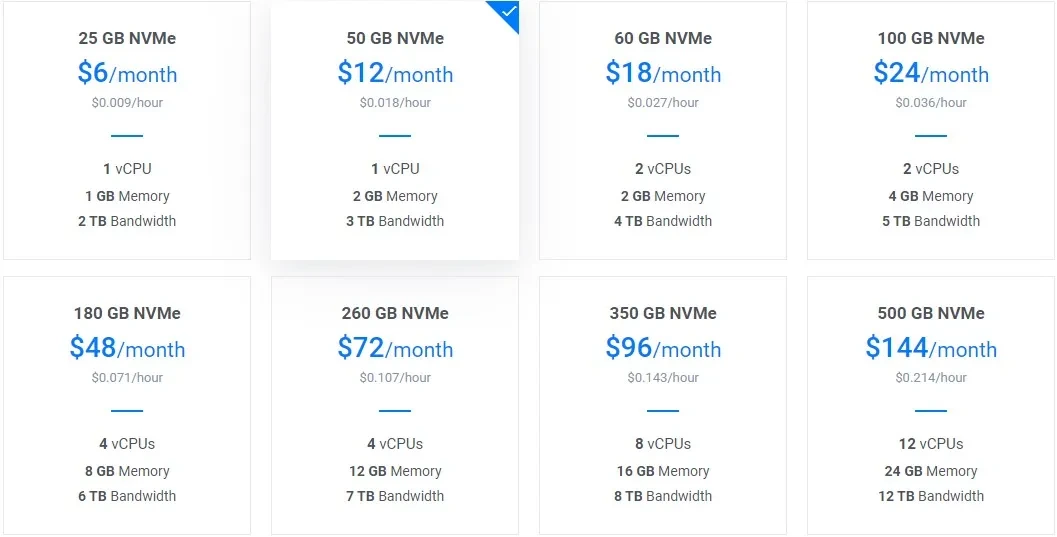 Vultr는 저렴한 가격으로 고품질 클라우드 호스팅 서비스를 제공합니다. 시간당 과금 시스템을 통해 필요한 만큼만 비용을 지불할 수 있어 예산 관리에 용이합니다.